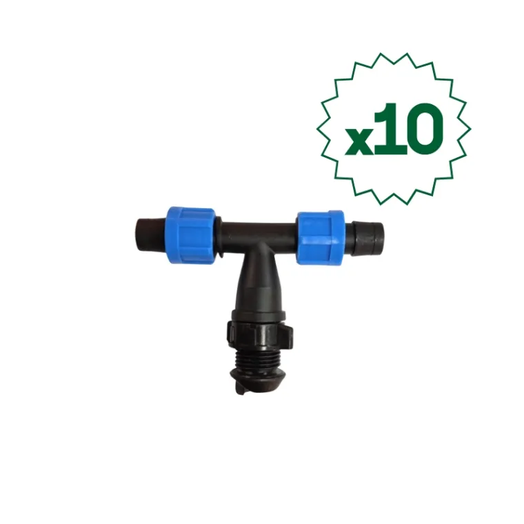 Conector Acople T Cinta con Caño Madre Riego Goteo x 10 Unid.