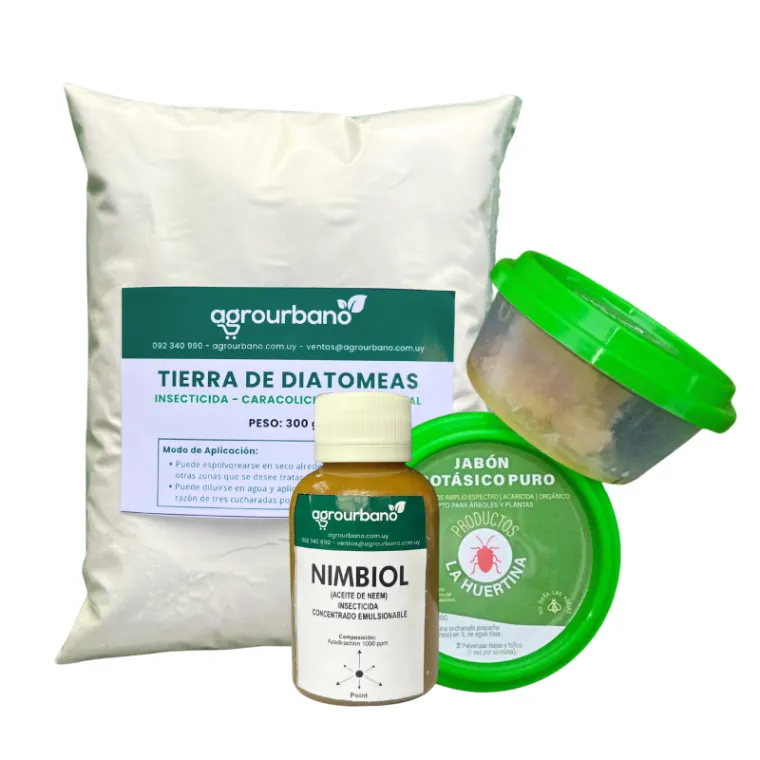 Kit Orgánico: Jabón Potasico 200gr + Aceite Neem 100ml + Diatomeas 300gr