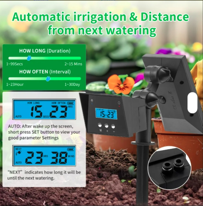 - Programación sencilla y confiable: el temporizador incorporado facilita establecer ciclos de riego constantes y ajustados a las necesidades de cada planta, asegurando un flujo regular y sin complicaciones.