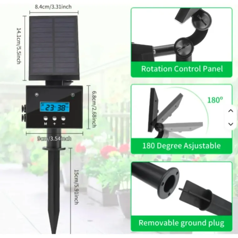 - Alimentación 100% solar: su panel solar integrado y batería interna de 2200 mAh garantizan energía continua. El sistema se adapta para captar luz desde cualquier ángulo, acumulando carga inclusive en días nublados.